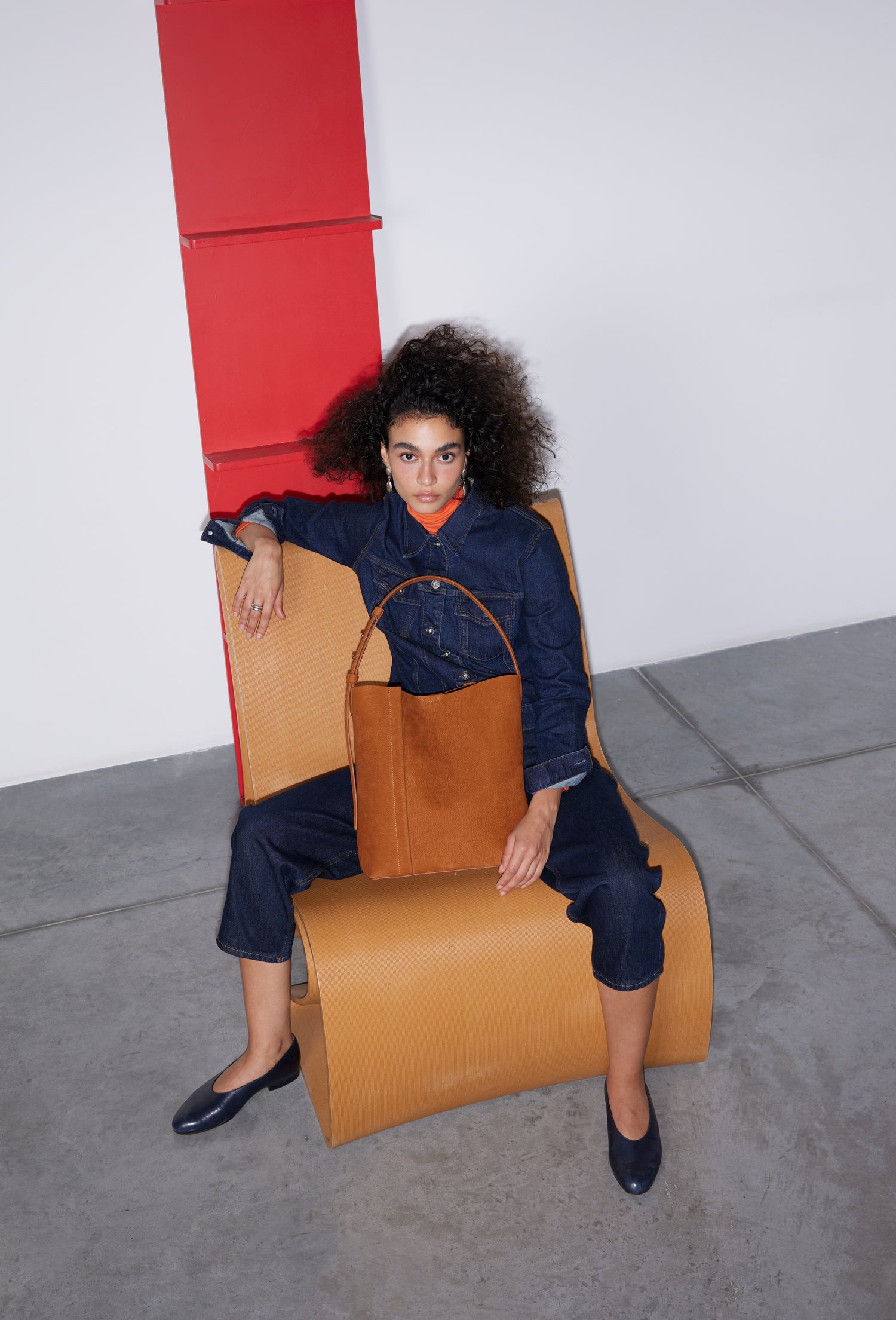 THE MEDIUM TOTE PLISSÉ TOFFEE NUBUCK