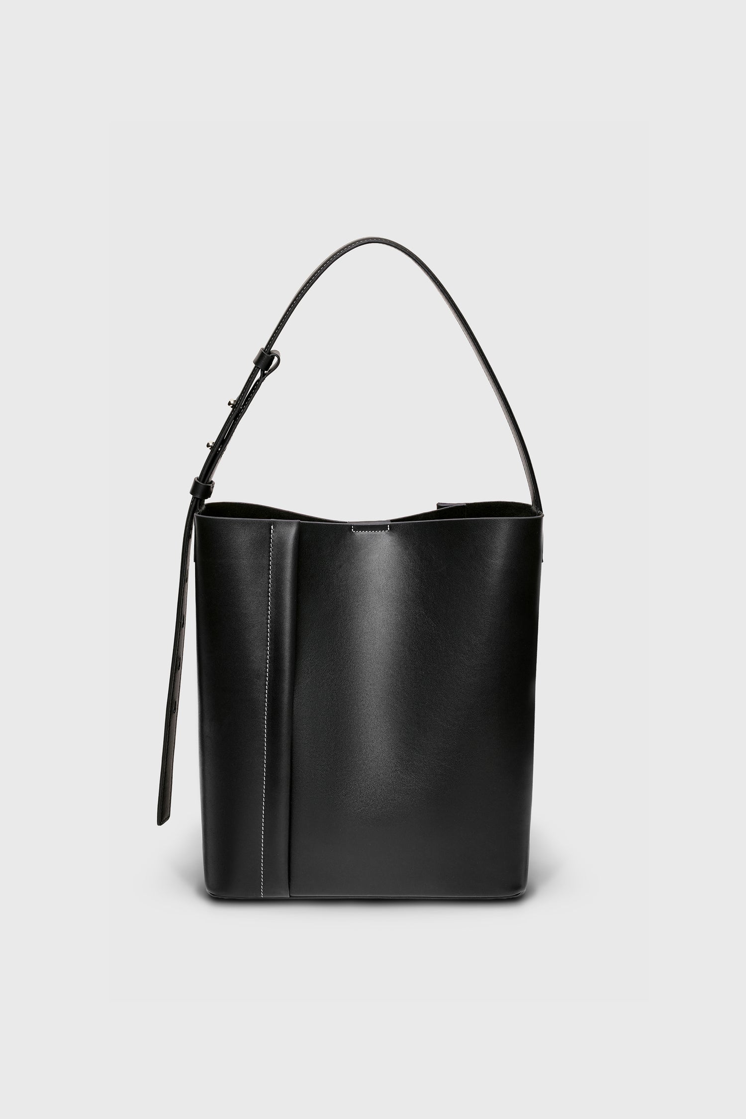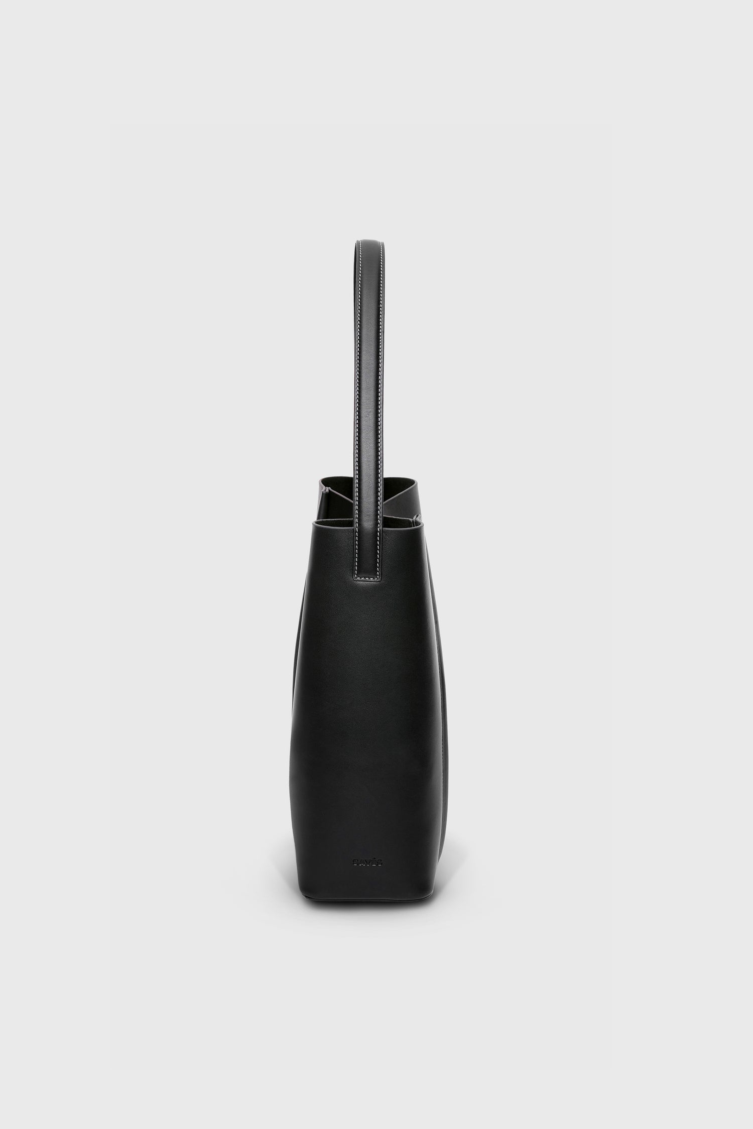 The Large Tote Plissé is defined by its architectural tall silhouette, built through a cross-symmetric pleated construction that gives the design its distinctive structure. The design is crafted from LWG-certified Italian calfskin and finished with bold off-white contrast stitching that deliberately accentuates its form.