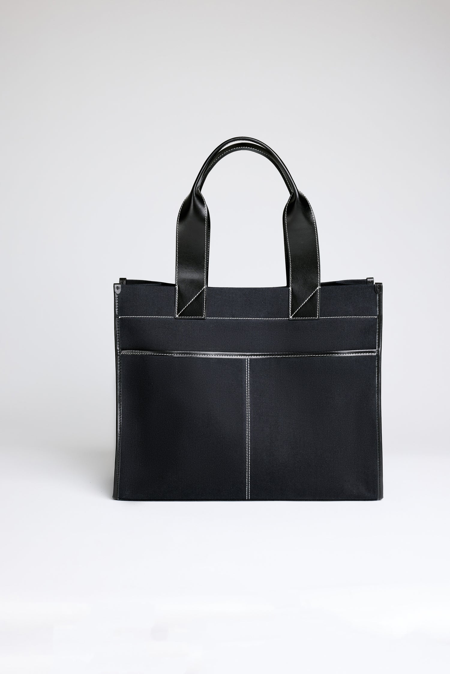 STITCHED POCKET MAXI TOTE IN NAVY AND BLACK