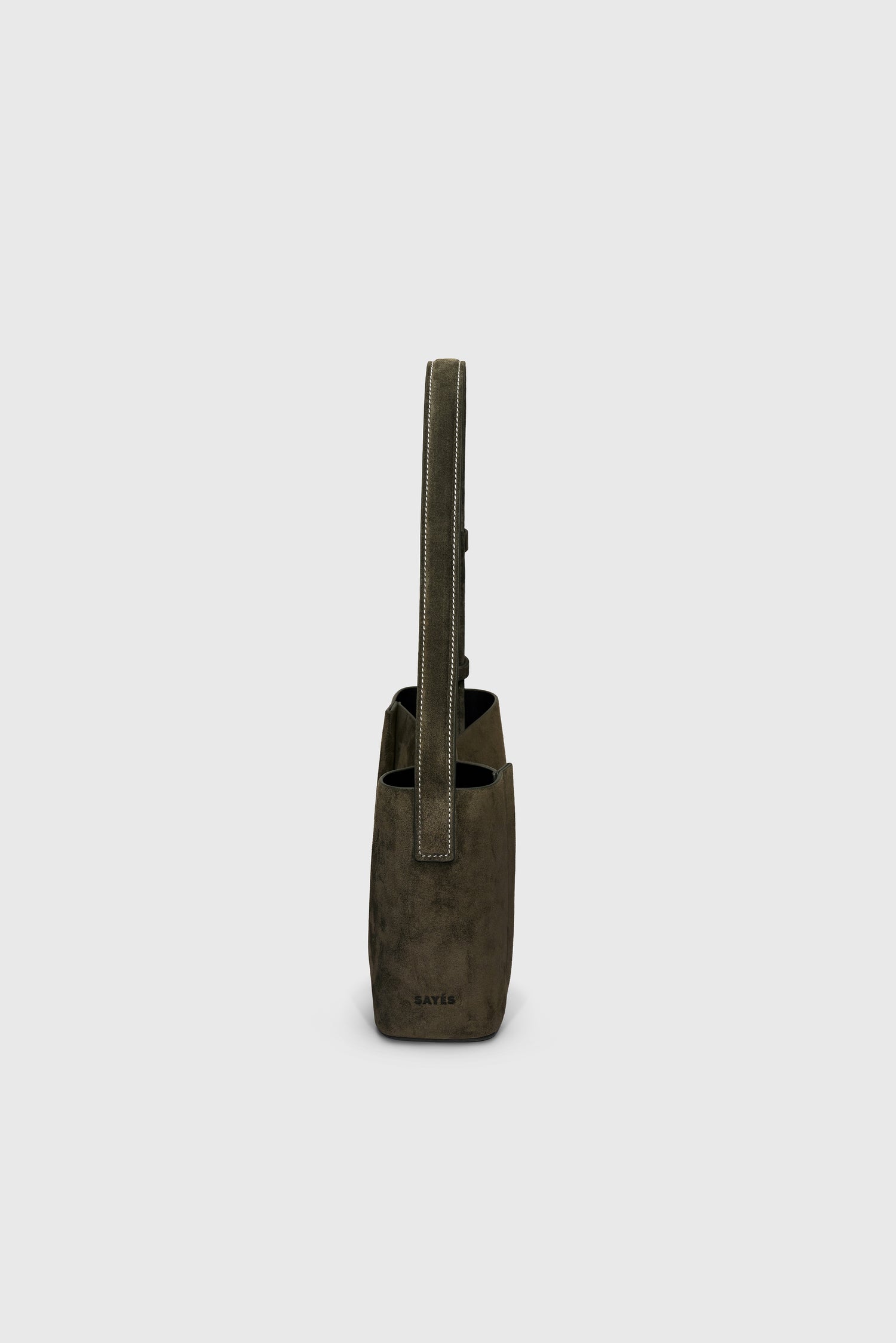 THE SMALL TOTE PLISSÉ KHAKI SUEDE